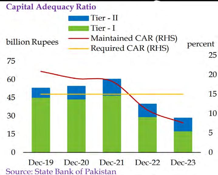 This financial strain has taken a toll on the MFBs’ capital base. Unsurprisingly, the sector as a whole is now undercapitalized, with a Capital Adequacy Ratio (CAR) of 7.6% - almost half of the State Bank of Pakistan’s (SBP) regulatory limit of 15%.