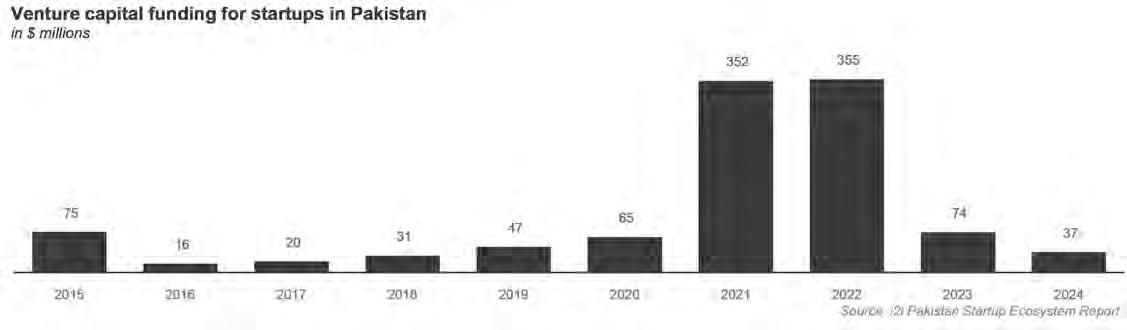Careem is technically not a Pakistani startup, but it has a Pakistani founder and its Pakistan operations were a key part of its story. Its acquisition by Uber for $3.1 billion in January 2020 was marked as a turning point for the Pakistani tech sector: it was seen as a successful exit of a startup that also served Pakistan and helped put Pakistan on the map of global venture capitalists. The next two years saw the high-water mark for venture investing in Pakistan. Pakistani startups raised $352 million in venture funding in 2021, and $355 million in 2022.