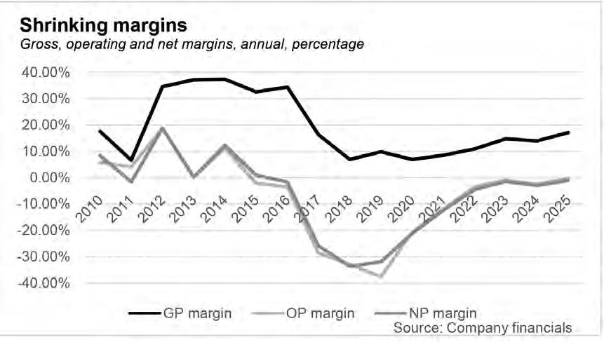 The impact of the increasing costs was seen in the other operating expenses of the company as its operating profit margin went from 18.7% in 2012 down to -37.6% in 2019 and settling at -2.54% in 2024. The net margin also went through the same trajectory as it registered at -3% in 2024.