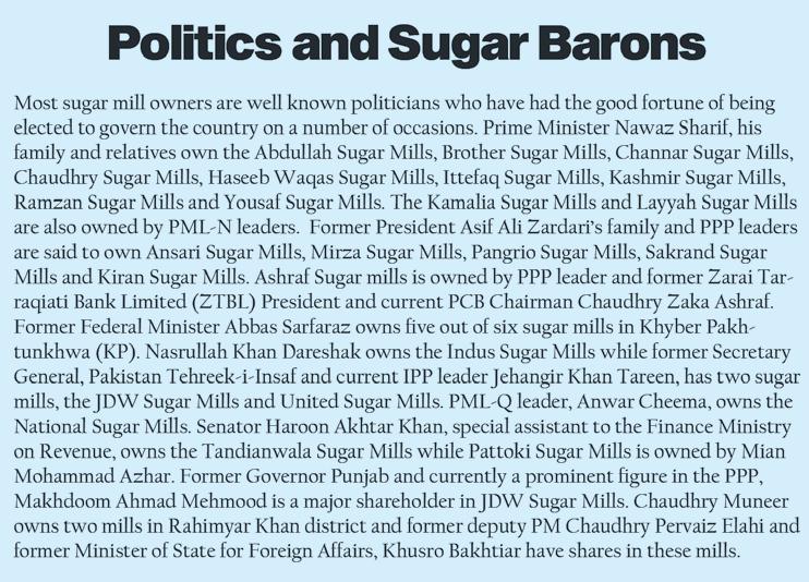 The industry’s political muscle isn’t confined to courtrooms. Numerous mills across the country are owned or controlled by leading politicians and their families, and decisions affecting sugarcane pricing, water allocation, trade policy and mill licensing are closely watched for their political as well as economic impact.