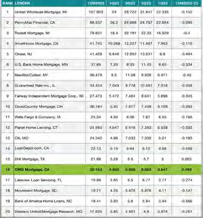 CMG is top growth lender for annual origination volume from Sept 2022 to Sept 2023