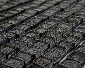 An auction in Colombo, Sri Lanka: each of these boxes contain a small amount of tea leaves and their lot number.
