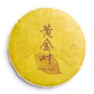 who would consume them as an everyday beverage. Nowadays, they are increasingly appreciated for their smooth, mellow flavor (they contain fewer bitter compounds and are naturally less aromatic than young leaves). A combination of buds and tender and mature leaves are used to make Bing Cha. Once harvested, the leaves are lightly withered before being roasted in a large wok oven, to partially “fix” the leaves, halting enzyme activity to prevent full oxidation. During this step, the low moisture content of the huang pian gives them their distinctive yellow hue. The leaves are then rolled and dried. They are then laid out on the floor and sprayed with water, before being covered with a tarp. The temperature quickly rises, reaching 60°C under the tarp. Microorganisms multiply rapidly and fuzzy coatings and molds begin to appear. Once the desired level of fermentation is achieved, the leaves are spread out in a thin layer and left to dry naturally for two weeks. After this step, the leaves are then sorted by grade, and the huang pian are used to be compressed into cakes.
