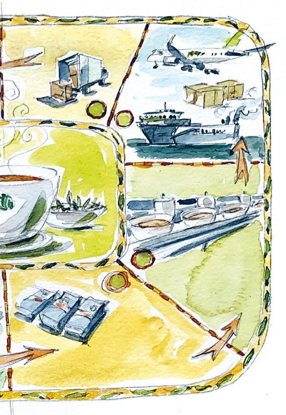 At Palais des Thés, 99 percent of our teas are purchased directly from more than ninety producers. We also occasionally buy directly from cooperatives, particularly in countries like Nepal or in Sri Lanka’s lowgrown tea-producing regions, as this model allows small producers to organize and strengthen their operations. This direct sourcing model is still rare in the world of tea. However, it ensures greater traceability and helps sustain a virtuous cycle (see pages 18-19). Palais des Thés founder François-Xavier Delmas chose to implement this model from the outset. As he did not come from a family of tea merchants, he instead chose to learn directly from the farmers themselves, without the involvement of middlemen.