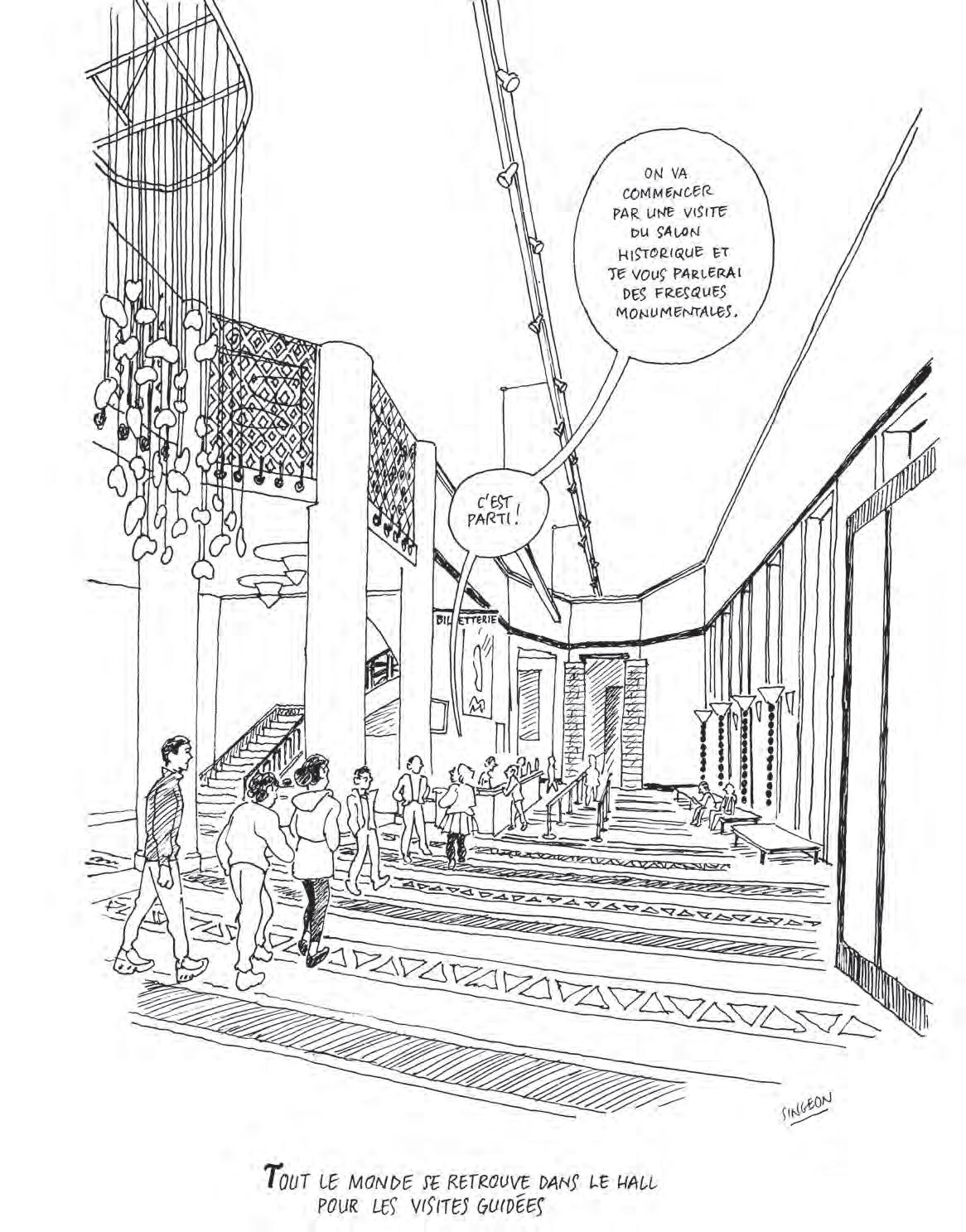 9h40 - La photo de la journée « J’ai remarqué que de nombreux visiteurscherchaientàtouchercette œuvrefragile.Nefaudrait-ilpasinstaller un message devant ? » Dans leHalld’honneur,commechaque matin, les équipes de l’accueil et de la sécurité dressent le bilan de la veille. Puis Solène Esperon, cheffe du service de l’accueil et de l’expérience de visite, présente le programme de la journée avec l’ouverture des portes à 10 h : fréquentation attendue, événements exceptionnels—concert,privatisation de salle… Ce soir-là, l’Établissement accueille un Mercredi de la Porte Dorée consacré à un sujet d’actualité. La journée s’annonce dense !