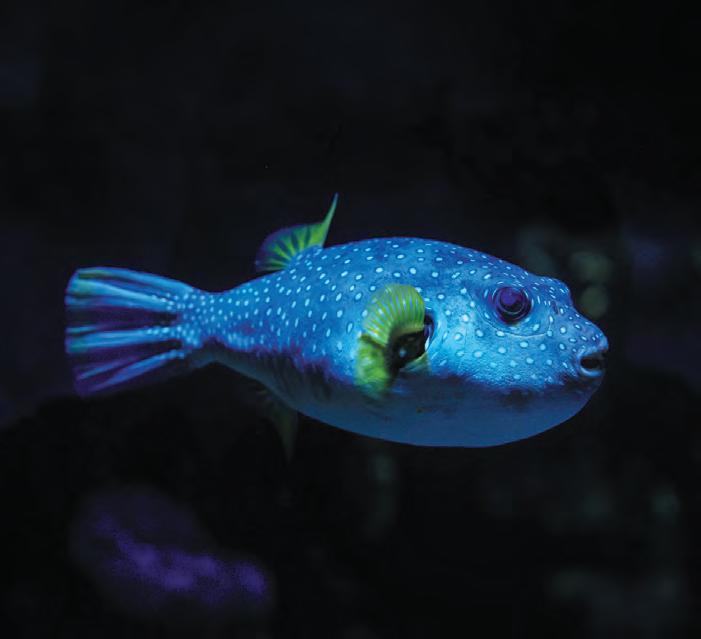 produisent des sons. Grognements, claquements, bourdonnements permettent notamment d’attirer un partenaire, de montrer qu’on est le chef, de défendre un territoire ou de synchroniser des comportements de groupe. Ces sons sont émis par la vibration de la vessie natatoire ou par le frottement d’os. Autre mode de communication : l’émission de molécules chimiques comme les phéromones. Ces dernières transmettent des informations telles que la présence de prédateurs, le moment de la reproduction et même l’état de santé d’un congénère. Enfin, la communication peut être avant tout visuelle. Chez les cichlidés des lacs africains visibles à l’Aquarium tropical, les mâles modifient leurs couleurs et adoptent des postures spécifiques pour attirer les femelles ou intimider des rivaux. Quant au mérou, c’est en bougeant la tête qu’il lance une chasse en coopération avec la murène.