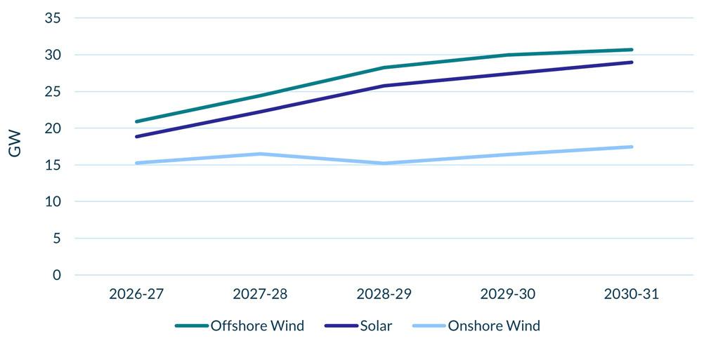 In the latest edition of Cornwall Insight’s Renewables & Power Markets Forecast Report, it was highlighted that offshore wind capacity will increase from 21 GW in 2026 to 31 GW by 2030, while onshore wind will grow from 15 GW to 17 GW, and solar will rise from 18 GW to 29 GW. The combination of expected increases in offshore and onshore wind, the accelerating build-out of solar, and electrification of demand that is not yet fully time-aligned with renewable output implies that price cannibalisation will increase out to the 2030s, with the effect intensified by local transmission constraints, limited storage, and flexible demand.