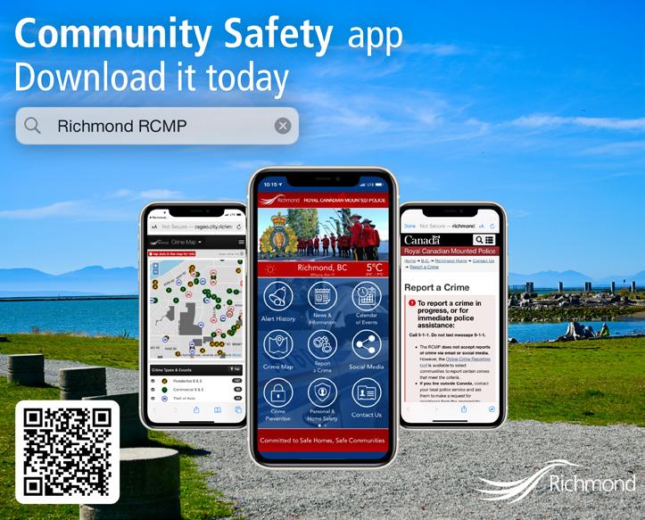 Steveston Community Police - RCMP (ad p. 34) 4371 Moncton St Non-emerg: 604-713-2323 richmond.ca/safety/police