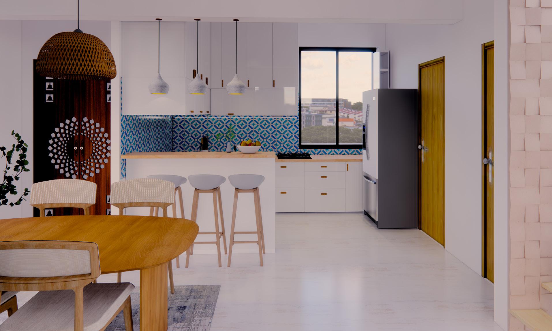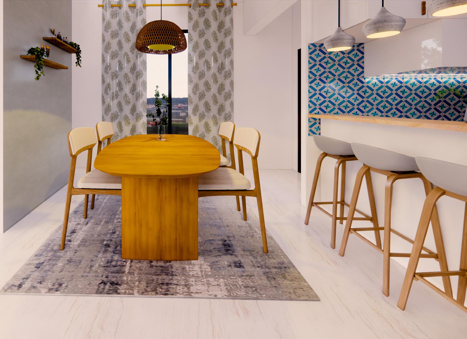 harmoniously with the scerenic nature around by utilizing the space wisely. The design is proposed in a coastal theme with all the colors and elements resembling to the sea and natural elements with a tinge of minimalism in the interiors in order to maximize the space visuality. The desi-