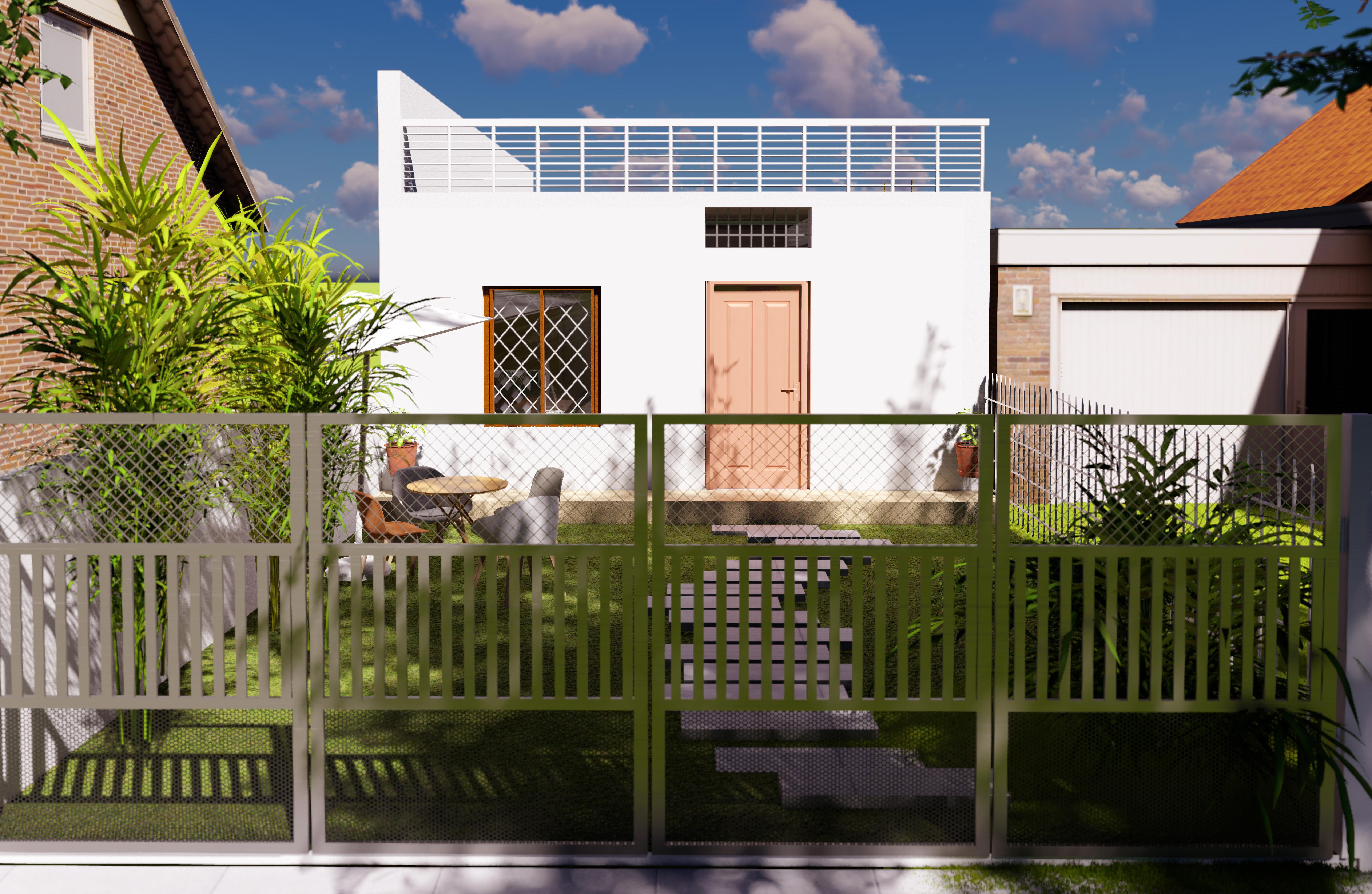 The building is a recently constructed building built in 2021. It has a basement region with some shops in the ground floor. The design is planned to be intoduced in the 1st and 2ndfloor. The building is adjacent to an arcade which is a newly built building too on the east side. The building’s entrance is facing towards south side. The built up area is around 360sq.ft in area. The building is kept open on the south and west side with few windows on the north side. Due to this, fenestrations can be introduced on to the facade as they receive much of sunlight in.