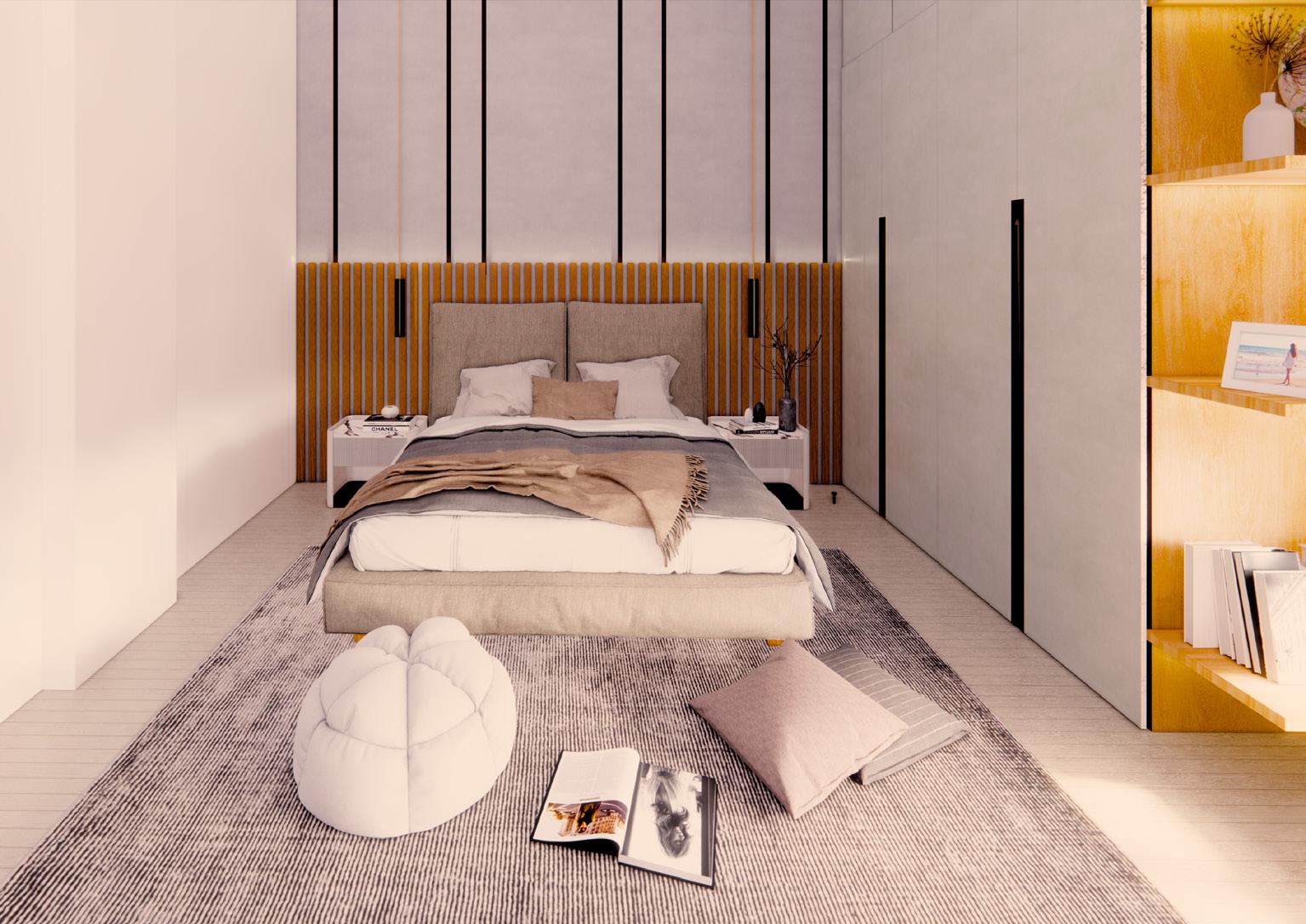 sed through the stairs that run from the lower level connecting to the upper level. The idea of introducing levels in the same floor in addition with the stairs adds an element of verticality along with some space to storage. This is a project designed for a couple who wanted some peace time to stay and live