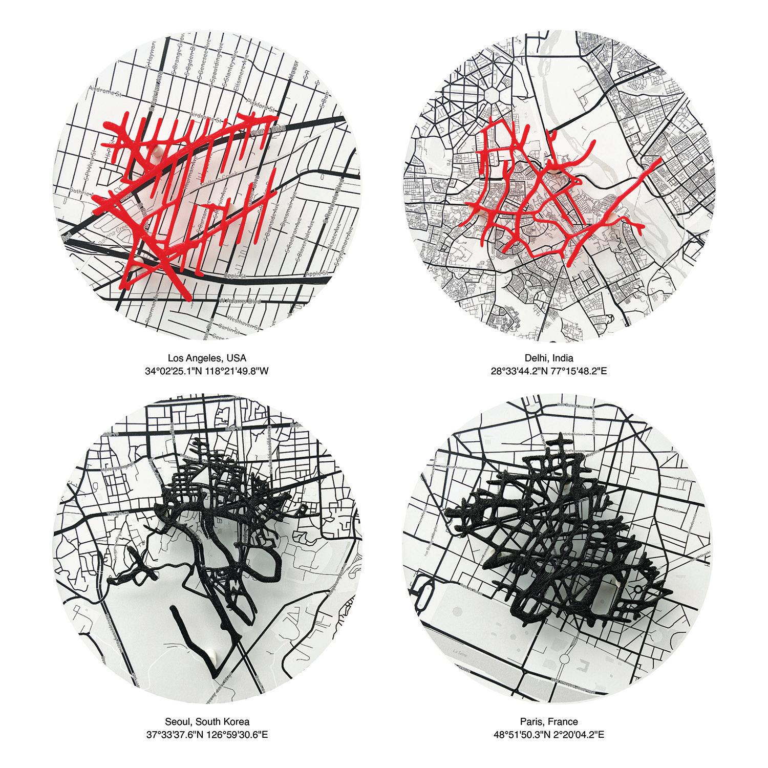 This new work examines line segmentation, vascular structure, and the parallels between inner and outer routes, veins and roads alike, diversely weaving through bodies and landscapes. Participants may export their data as a personalized keepsake in the form of 3D-printed sculptures, turning a moment of data collection into a tactile, enduring memory of the encounter.