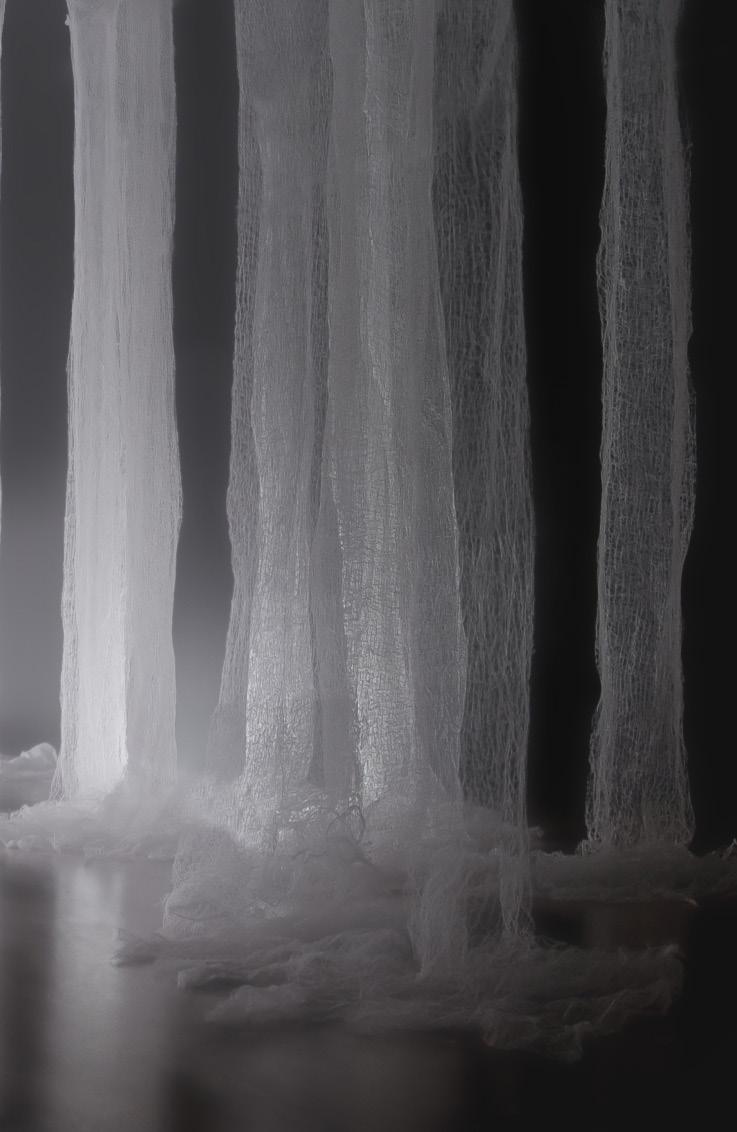 The devastation of forests in Argentina has social and environmental consequences of alarming scope. The awakening to such a local scenario led us to create this work, which, with the arrival of the pandemic, significantly broadened its meaning by connecting us with a global experience of destruction. Climate change and ecosystem degradation are some of the major aftermaths. The installation rehearses the scene of a forest in the process of fading to visualize and raise awareness about the environmental issue that affects the planet. The spectral weave of the absent forest is not only a trace that we record in memory and that saves us from the danger of oblivion but also a warning about the future that builds the ways of life of our civilizations.