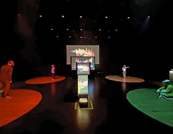Land-escape and the Aura of Distance is a multi-faceted digital installation using projectors, colored light, Mixed Reality headsets, sound, and physical paintings.