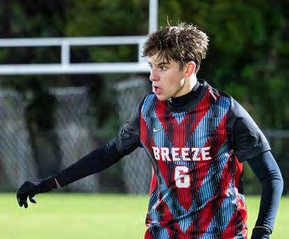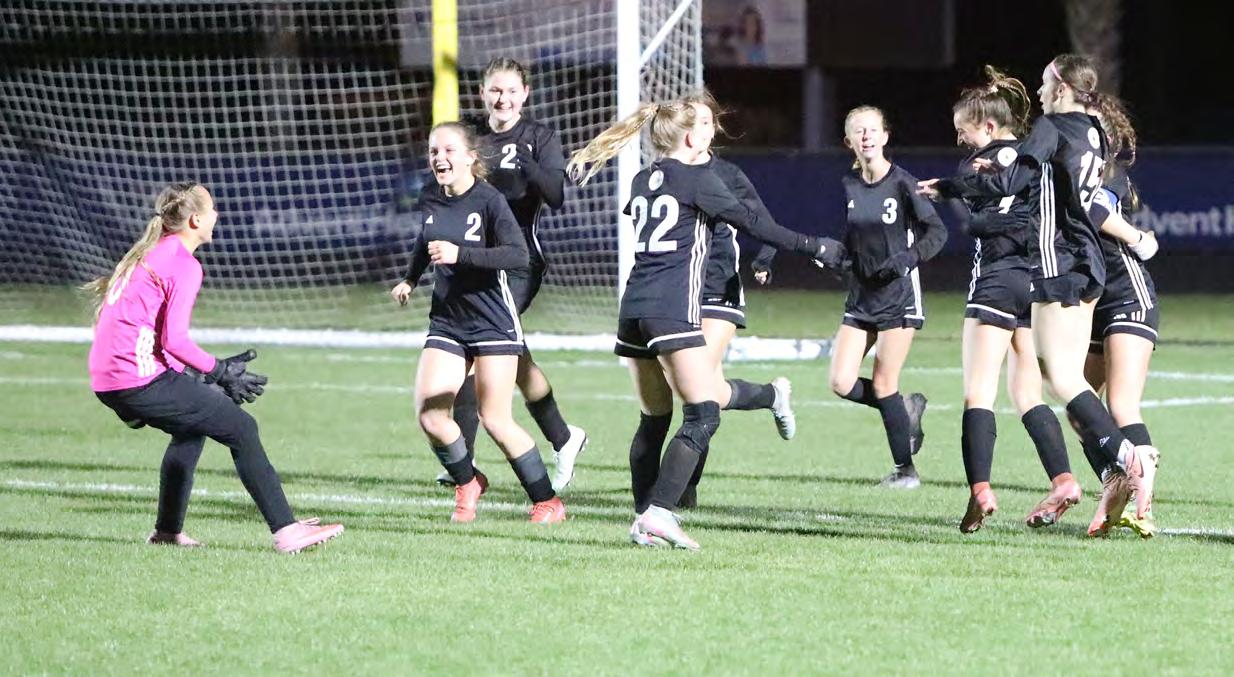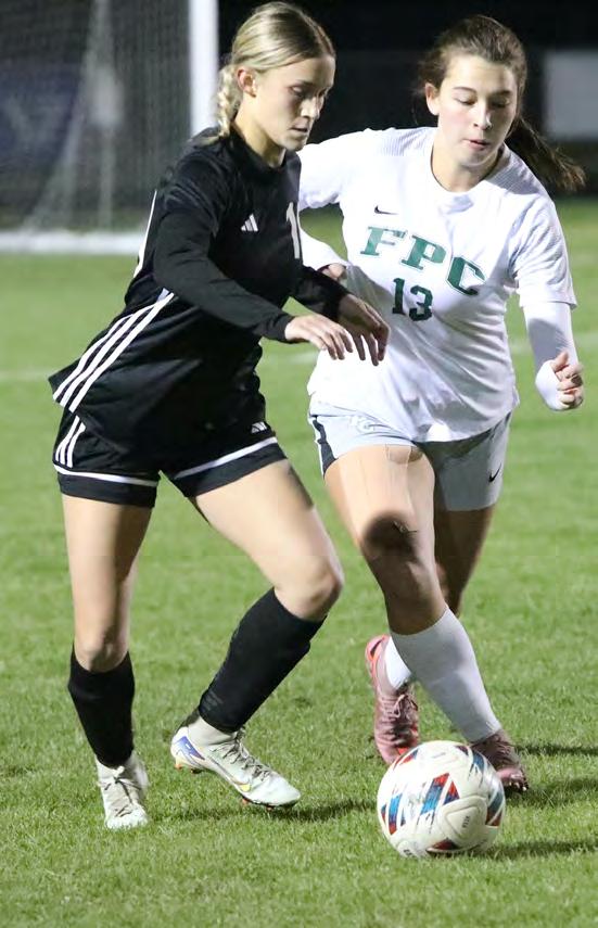 Matanzas goalkeeper Ella Forbes (left) runs up to celebrate Emma Skinner’s game-tying goal with her teammates. Photos by Brent Woronoff FPC’s Taci Cook controls the ball.