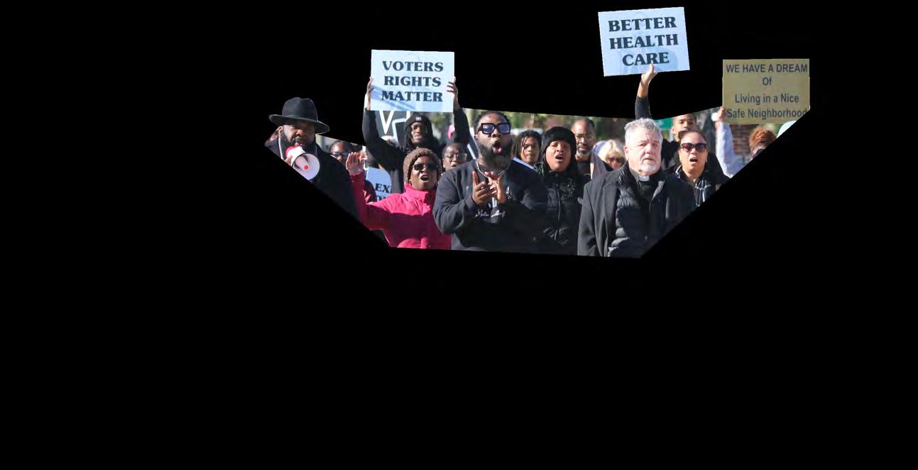 The march was followed by a worship ceremony celebrating King at the Allen Chapel AME Church, where leaders of local organiza -