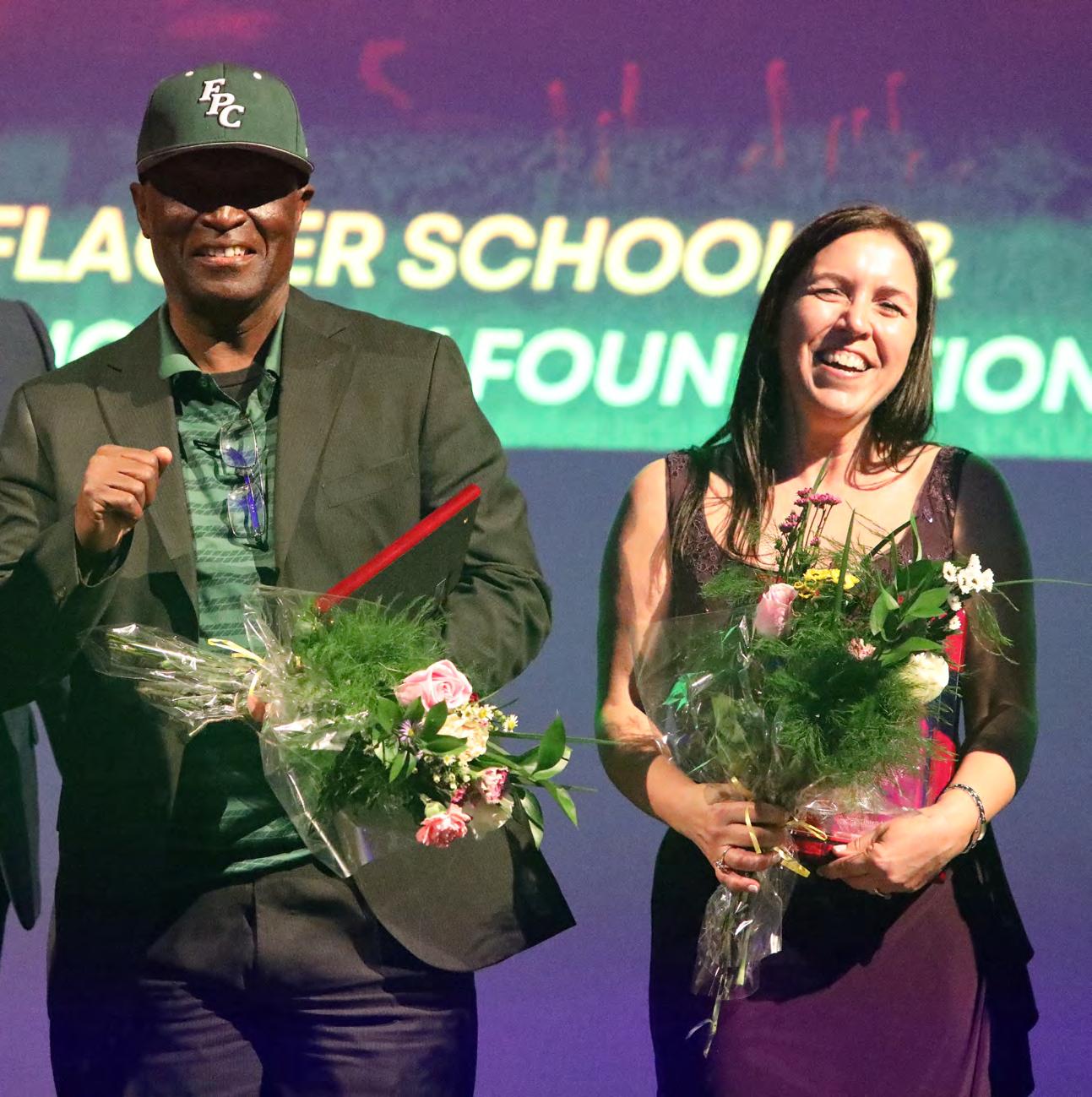 Flagler Schools Employee of the Year Calvin Grant, from Flagler Palm Coast High School, and Teacher of the Year Michelle Moore, from Belle Terre Elementary School. Photo by Brent Woronoff