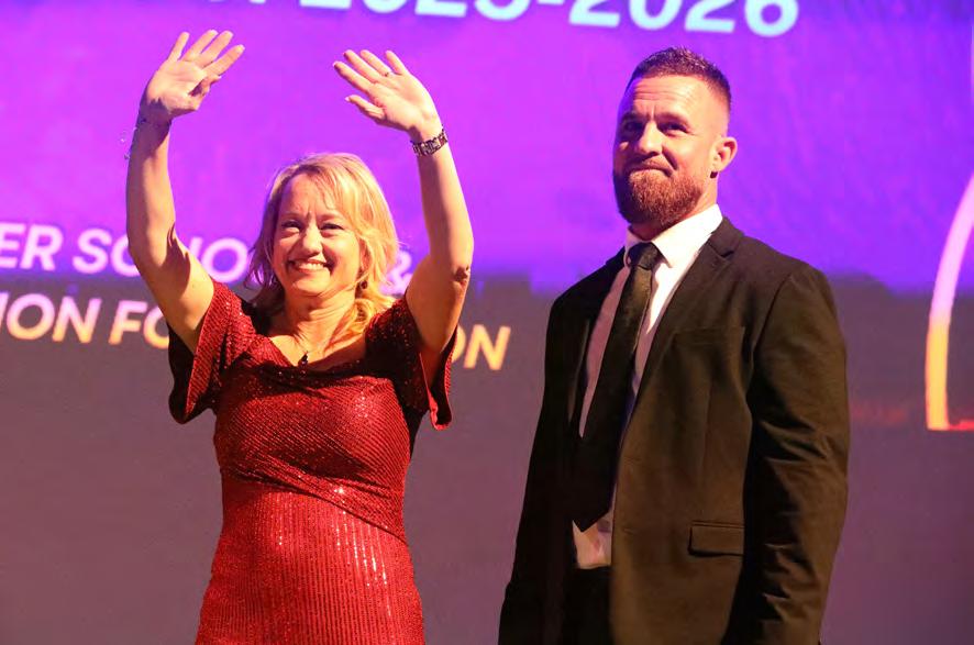 Michelle Moore had two words to describe her reaction when she was named 2025-26 Flagler Schools Teacher of the Year: “Complete shock!” Moore and Flagler Palm Coast High School Campus Security Officer Calvin Grant were named the school district’s Teacher and Employee of the Year, respectively, at the end of the district’s annual awards gala Monday, Jan. 26, at the Fitzgerald Performing Arts Center.
