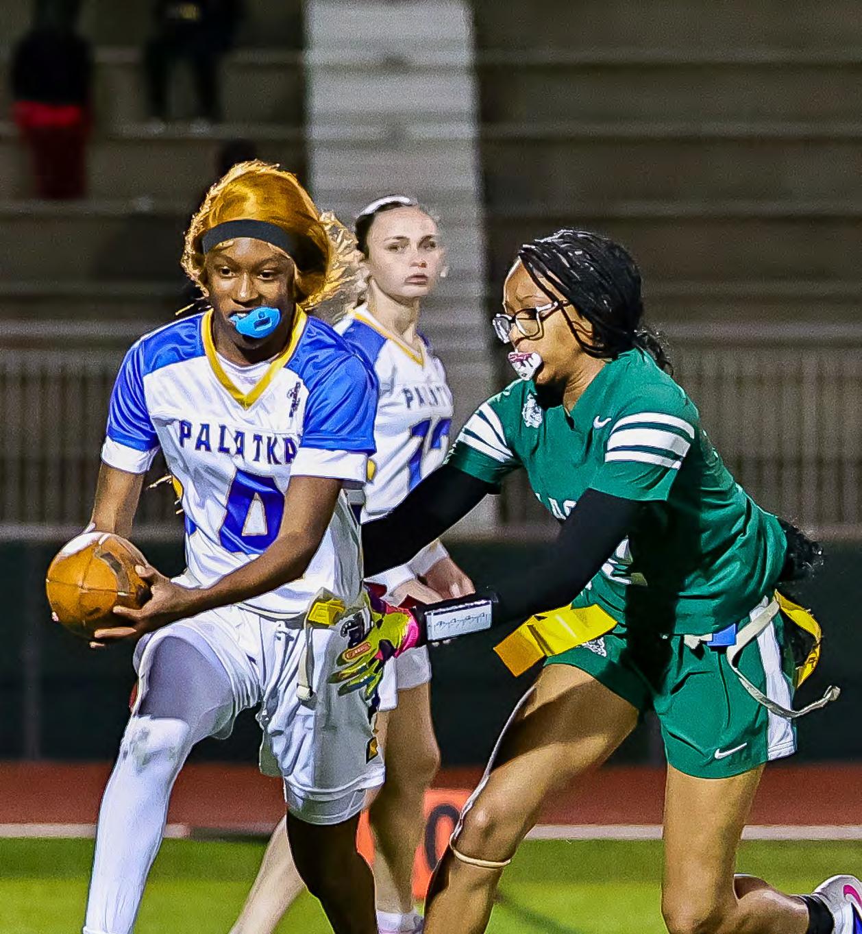 Shekinah Williams (right) pulls the flag of Palatka’s Rashari Session. Photo by Keishia McLendon