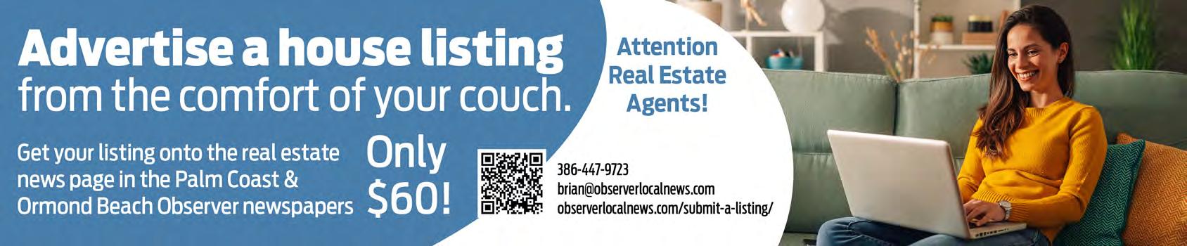 *It is the responsibility of the party placing any ad for publication in the Palm Coast Observer to meet all applicable legal requirements in connection with the ad such as compliance with towncodes in first obtaining an occupational license for business, permitted home occupation, or residential rental property. Notice: All real estate advertised herein is subject to the Federal Fair Housing Act, which makes it illegal to advertise any preference, limitation, or discrimination because of race, color, religion, sex, handicap, familial status, or national origin, or intention to make any such preference, limitation or discrimination. All persons are hereby informed that all dwellings advertised are available on an equal opportunity basis.