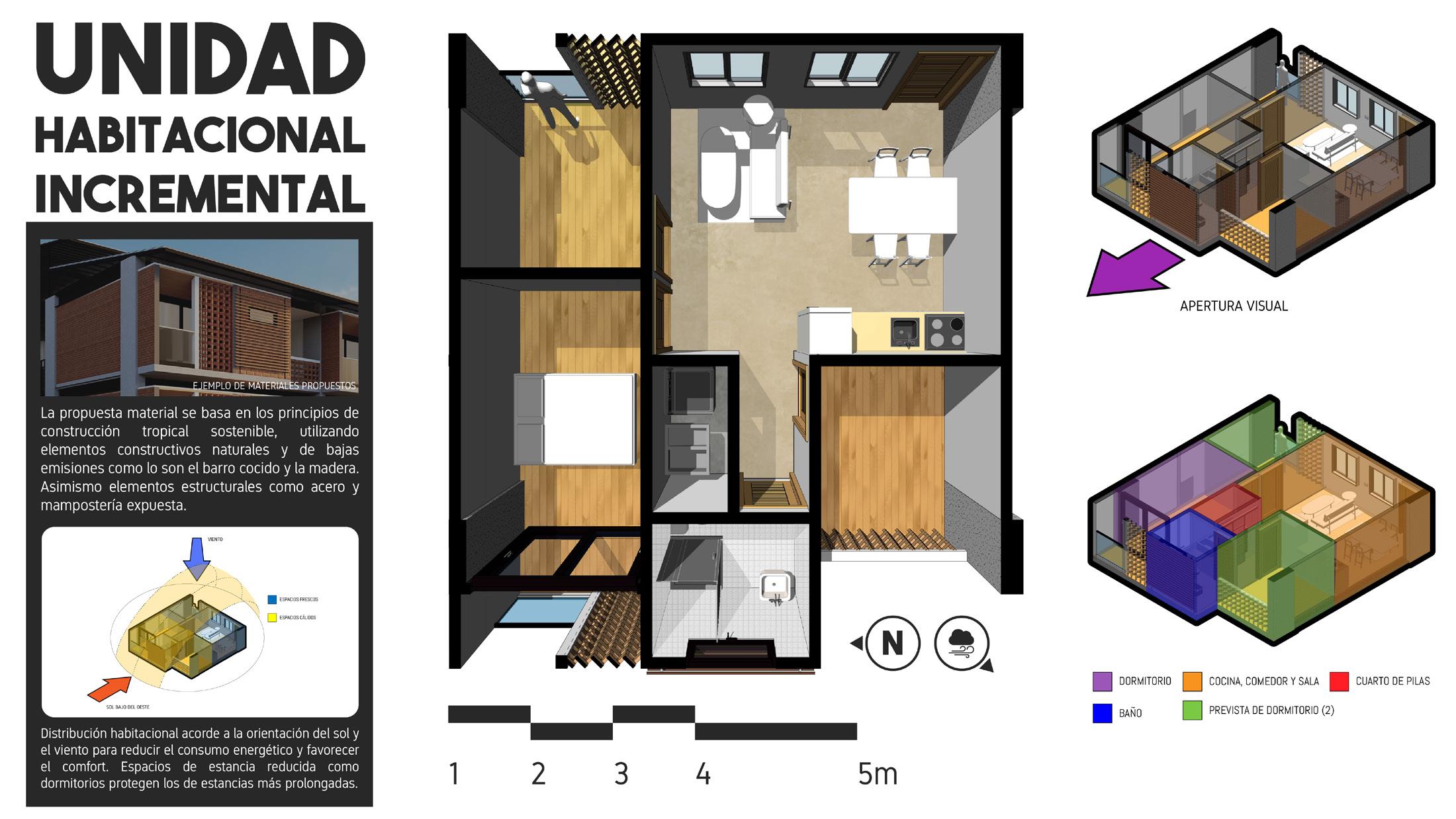 Las viviendas propuestas para el proyecto urbanístico tienen un fuerte énfasis en la modulación, ya que se requiere de un proceso que minimice el impacto negativo que poseen las construcciones con los desechos generados. En este caso, el uso de la modulación con bloques de concreto permite una mayor presición en los cálculos sobre las cantidades de materiales requeridos, su inversión económico y ayuda con un mejor impacto positivo al ambiente.