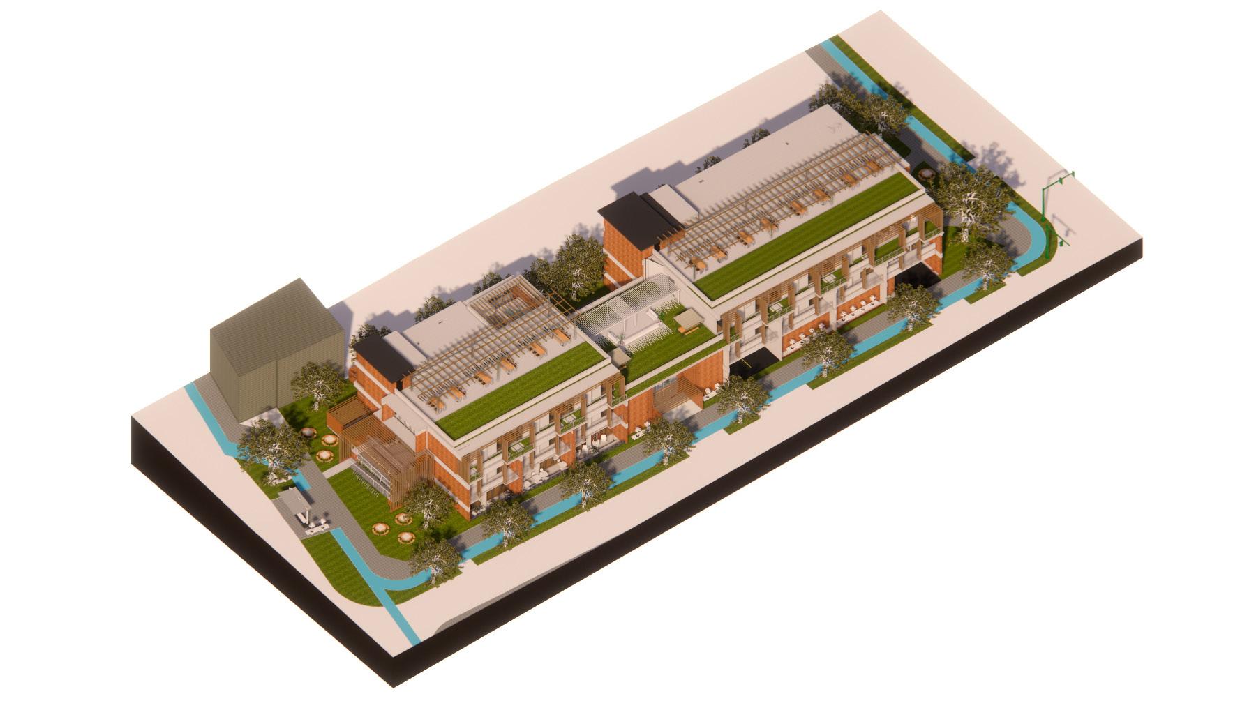 El proyecto fue elaborado por Pamela Azofeifa y Esteban Quirós para el Instituto Nacional de Vivienda y Urbanismo como Práctica de Vinculación. Su diseño contempla el compromiso con los Objetivos de Desarrollo Sostenible propuestos por la ONU, desarrollando viviendas de bien social, viviendas de alquiler y nuevos puestos de empleo que potencien el comercio local.