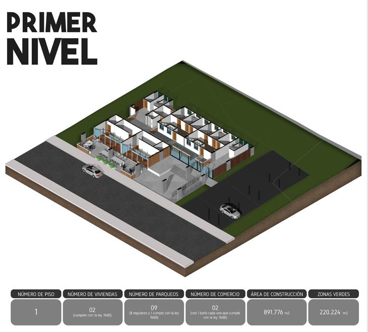 Por un lado, las viviendas cuentan con 57 m2 en el primer nivel y 48 m2 en el segundo para un total de 105 m2 cada una. Por otro lado los terrenos van desde los 471 m2 hasta los 628 m2 debido a su ubicación en una parcela agrícola.