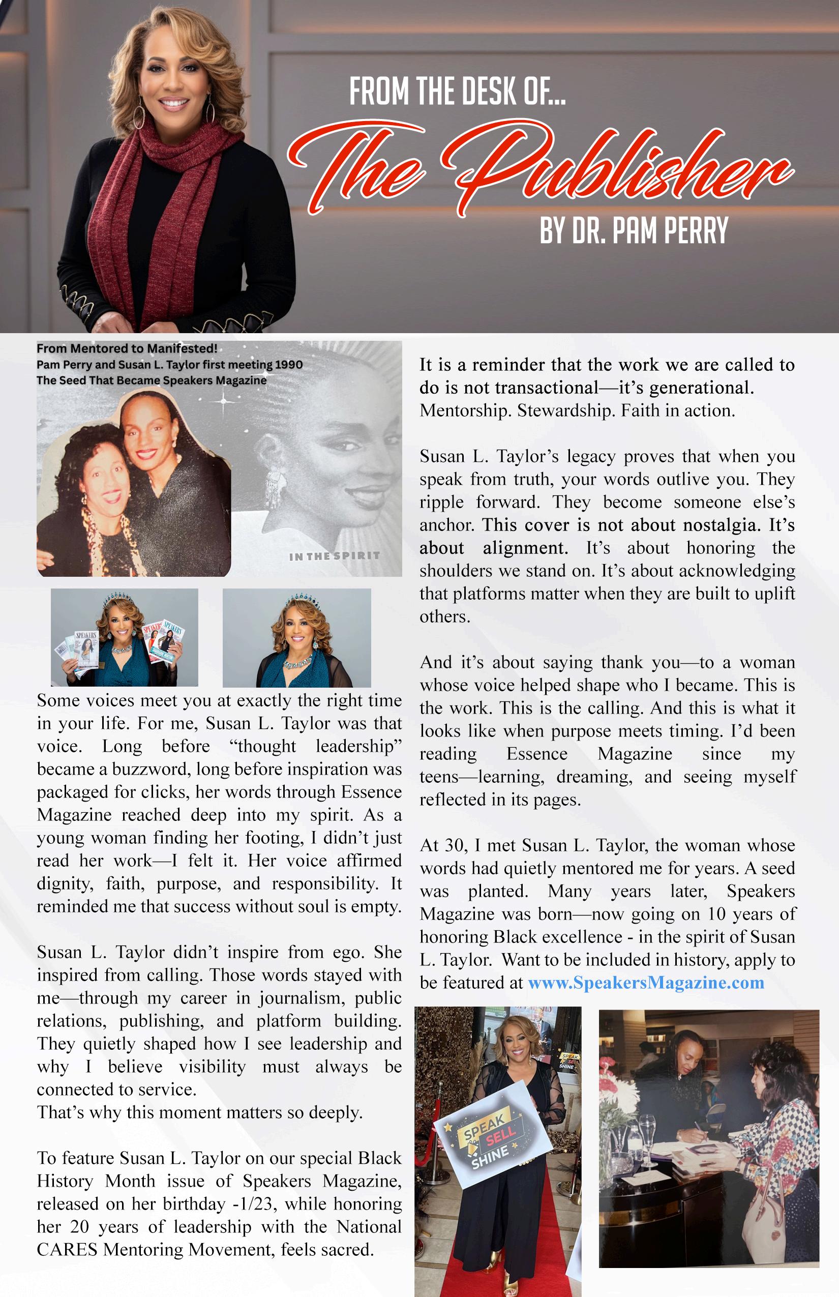 Released in the spirit of mentorship and service, this edition aligns with the upcoming For the Love of Our Children Gala in New York City, celebrating Susan L. Taylor’s extraordinary legacy and ongoing influence. www.CaresMentoring.org | Visit www.SpeakersMagazine.com - the #1 mag