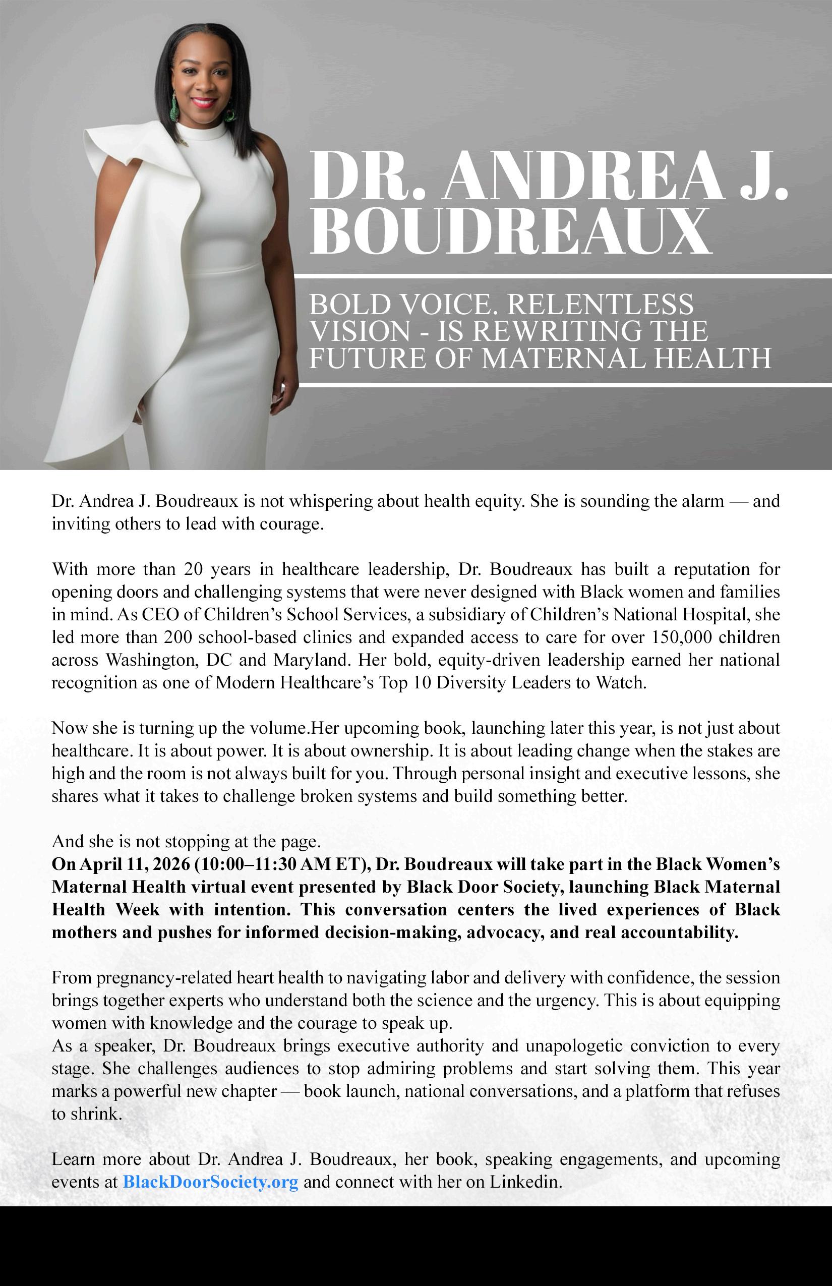 Dr. Andrea J. Boudreaux, championing maternal health equity and leading courageous conversations that save lives.