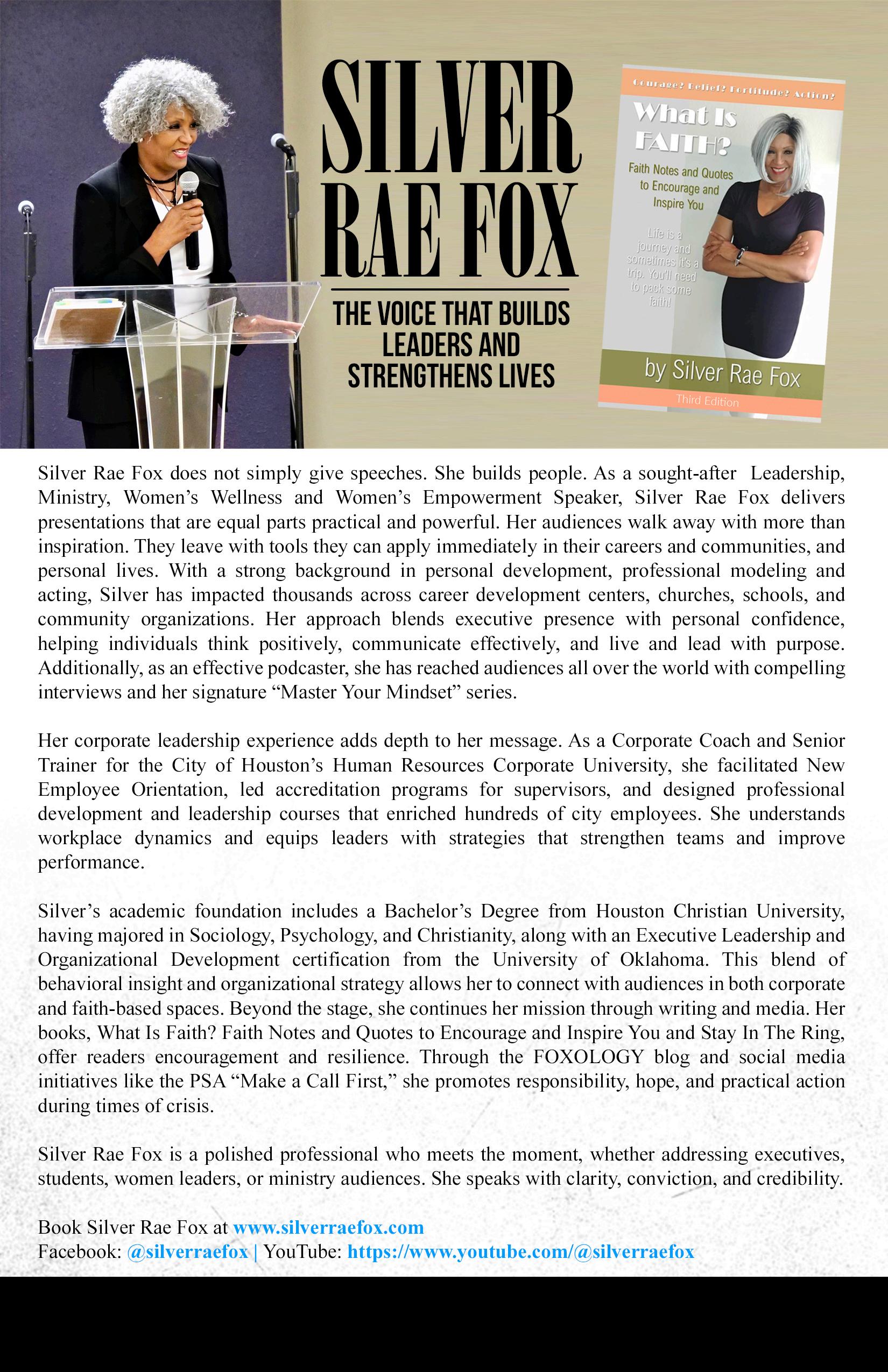 Silver Rae Fox, corporate coach and leadership speaker building stronger leaders and workplaces.