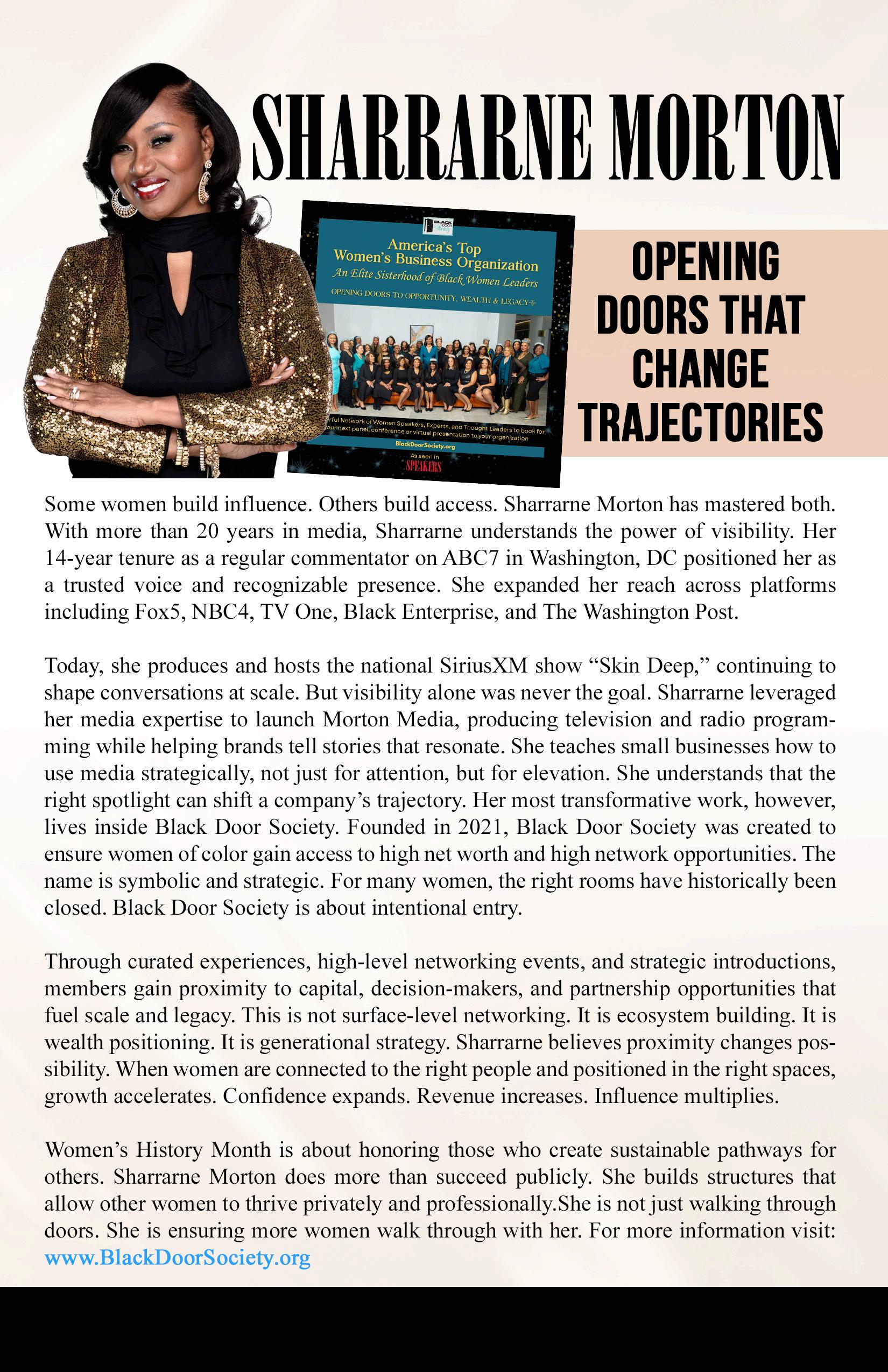 Sharrarne Morton, media strategist and founder of Black Door Society, opening doors that change trajectories for women leaders.