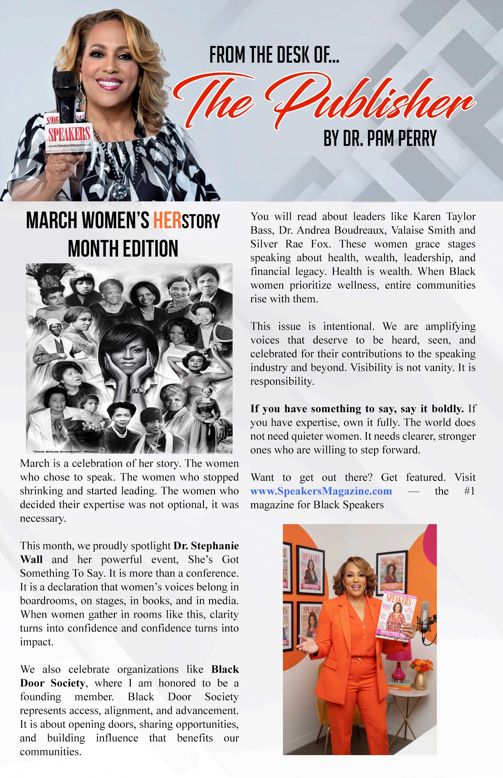 The March 2026 issue of Speakers Magazine is a powerful Women’s History Month edition celebrating bold leadership, authentic influence, and women who are building legacy in business, media, health, finance, and faith.