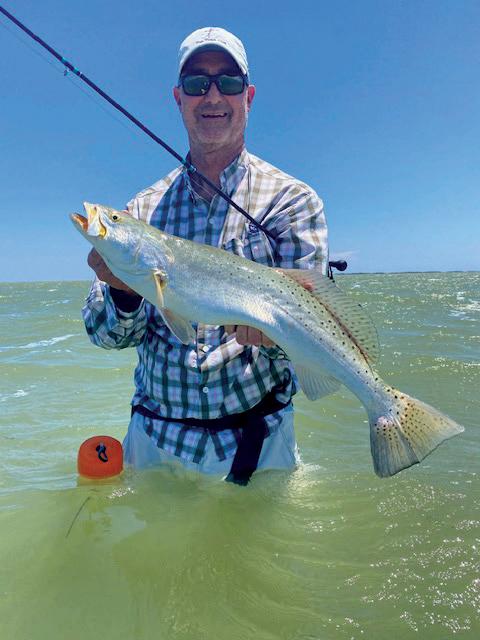 advanced our lures and equipment are these days compared to years ago. Heavy rods and reels have given way to ultra-lightweight, highmodulus, sensitive Waterloo Rods and long-distance casting Bates reels possessing the same feather-weight and sensitive characteristics of the rod on which they sit. Somewhat lackluster topwater plugs that seemed to be too heavy in the tail have now been replaced with lively, super buoyant, walk-the-dog style topwaters with the perfect high pitched rattles to entice even the most finicky of trout. MirrOlure has the perfect topwater for every condition. Period!