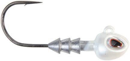 depth, and type of bottom habitat to help me decide what color gets threaded onto a lead head. In clear water with bright sunshine, glow/chartreuse and salt & pepper are hard to beat. This being said, if we’re fishing in clear water over patches of dark bottom grass, darker variations such as plum and Chicken-On-A-Chain usually work very well. Murky water typically warrants the use of darker colors such as Morning Glory, Red Shad, or Texas Roach. It’s all about shades and contrasts in a trout’s eyes.