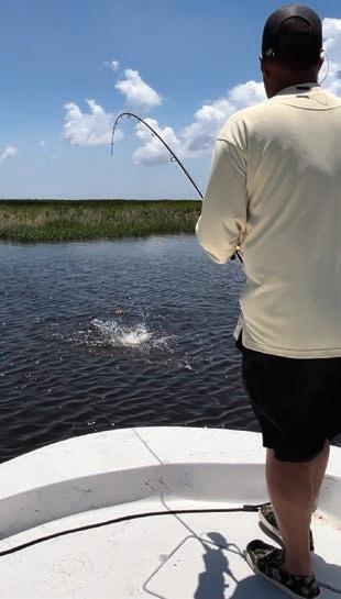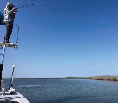 and Calcasieu in October is chasing the big schools of redfish that gather up during the middle of the day. If you happen to catch one of those light wind days and are willing to burn a little gas, you can find these fish blowing holes in the water while herding shrimp or pogies. These big schools seem to be out in the middle of the lake where there is little traffic and plenty of opportunity. Many times there may be only one or two lone gulls shadowing the school so don’t be quick to pass up one bird that looks like its interested in something because you may pass up an entire school of fish. The great thing about finding these schools out in the middle of the lake with only a few birds or none at all is that you won’t attract any attention from other anglers fishing the “bent pole” pattern. These schools, once they start feeding, tend to stay up for long periods of time, so it’s not uncommon to stick with them for an hour or more if you are lucky. Keep your binoculars handy and don’t be afraid to go check out anything that looks fishy. October is a great month with plenty of promise and one that I personally look forward to. Everything seems to come together during this time of the year and it really makes getting outdoors a much more pleasant experience. Both the variety and quantity of fishing opportunities makes this a perfect month to share the sport with a new angler, especially kids, because there is always something biting. Remember, be patient this month, and enjoy it all.