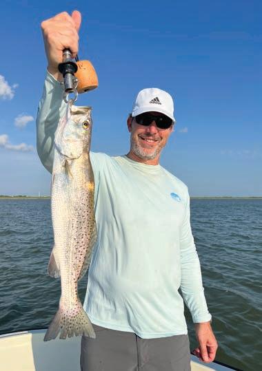 Blake says the tide has been high in the Coastal Bend lately, and he expects the condition to prevail through October. “When we get a big tide like this, I usually spend some time fishing right on top of the reefs, targeting both trout and redfish. All our local bays have some, and the fishing can be good on all of them when they’re covered fully. We also catch well throwing our topwaters and tails right next to the emergent grass on the shorelines when the bull tides come in. This pattern is normally good in October too. The fishing has been steady lately, with lots of trout around. We’ve been able to get out into the surf quite a few times, and it’s been excellent. The storms we had this summer have really flushed Cedar Bayou open. Vinson Slough is back to productive too. If we get calm winds in October, I’ll probably be heading out that way. This month is a kind of in-between month for the ducks, but it’s still dove season. I’ll be heading to the fields to hunt the doves some, mostly in the afternoons, and I’ll be booking hunts for the big duck season.”