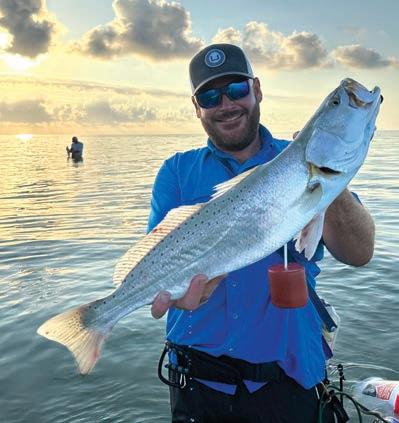 The key depth to find a good trout bite has been thigh to waistdeep. An area with a color change is always a plus. As the water continues to cool bigger trout will begin to feed more reliably in shallow water. Bigger trout will favor less-pressured areas, such as spoil island shorelines, westside back-bay shorelines, and way up shallow on the eastside sand. They will also be stationed in potholes on the flats. ZMan Big Ballerz, Paddlerz, and Streakz have been our best producing baits of late.