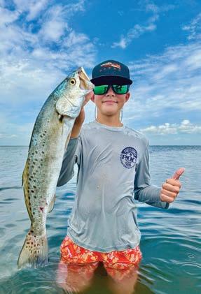 It has been a fun late summer season finding those pods of redfish along spoils and shorelines, and having anglers see them for the first time. This was just the case recently when first-time wader Catie Jackson was able to witness this firsthand. She was able to catch some nice redfish on surface lures and then was fortunate enough to be able to walk right up on a school of tailing redfish in ankledeep water. Check out the attached QR code for a short video of her landing a redfish on a topwater.
