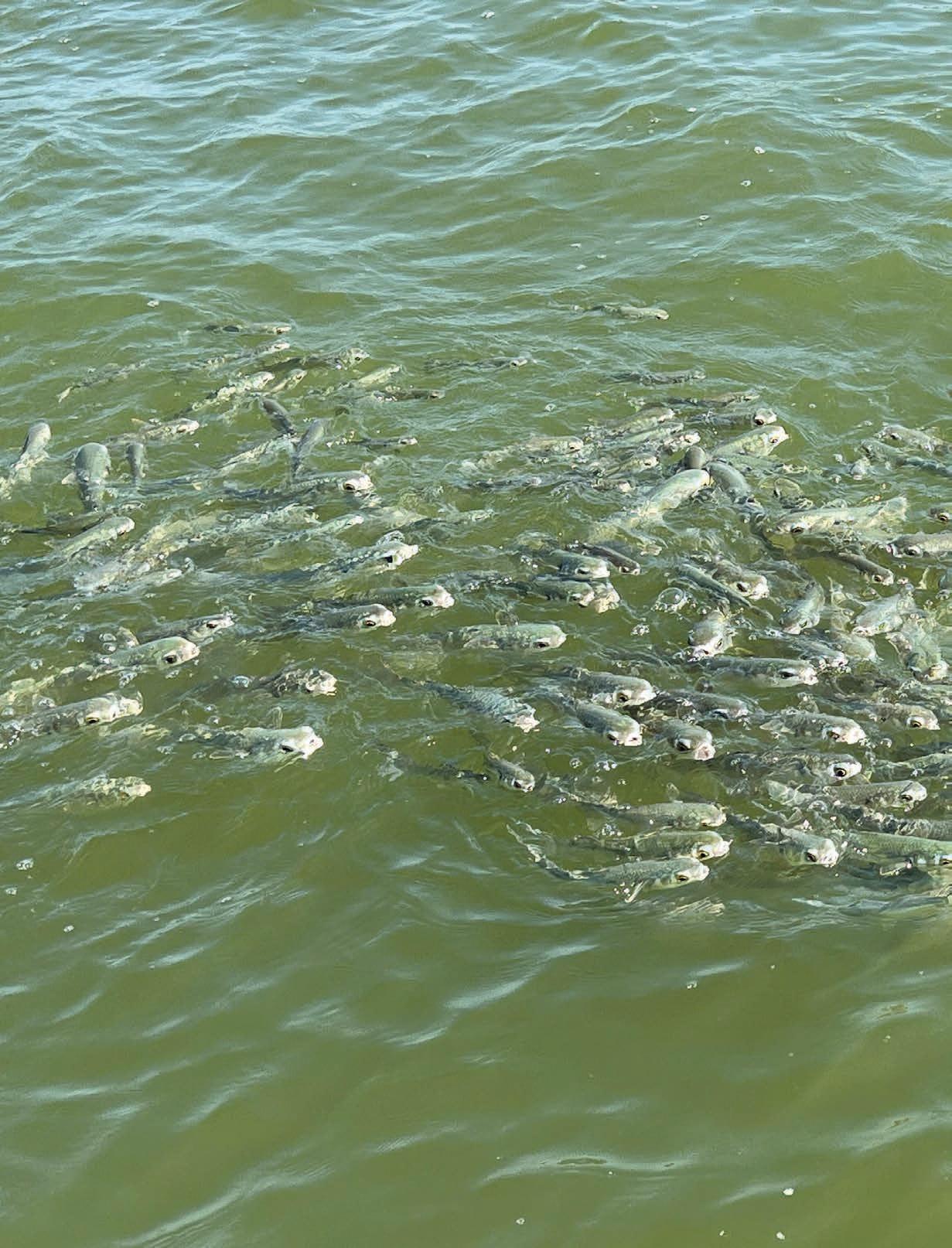 Growing up, my dad taught me how to find spots by triangulation. Landmarks such as a unique tree along a shoreline, a channel marker, or even a water tower would get us very close to our desired fishing spot. Once we thought we were on our spot we’d watch the rafts of mullet to determine where the highest points of a reef or other structure were located. We always knew that the trout and reds would gravitate toward the bait, so once we zoned in on the mullet we would look for the most nervous portions of the rafts. That was typically where our targeted fish were holding. A small slick or two popping along the edge of the bunched-up bait would further confirm the presence of trout or redfish.