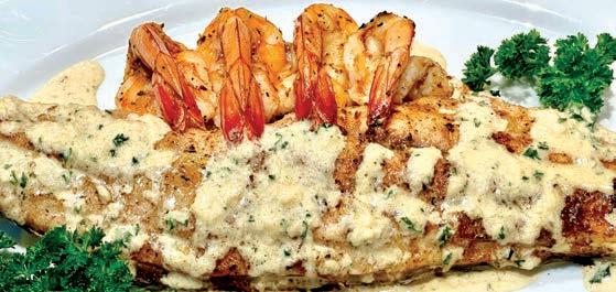 Season redfish and shrimp with Cajun seasoning. Melt butter and brush generously on seasoned fish and shrimp. Cook redfish fillets for about 15 minutes skin side down, add shrimp in rib pocket and continue to cook 5 more minutes.