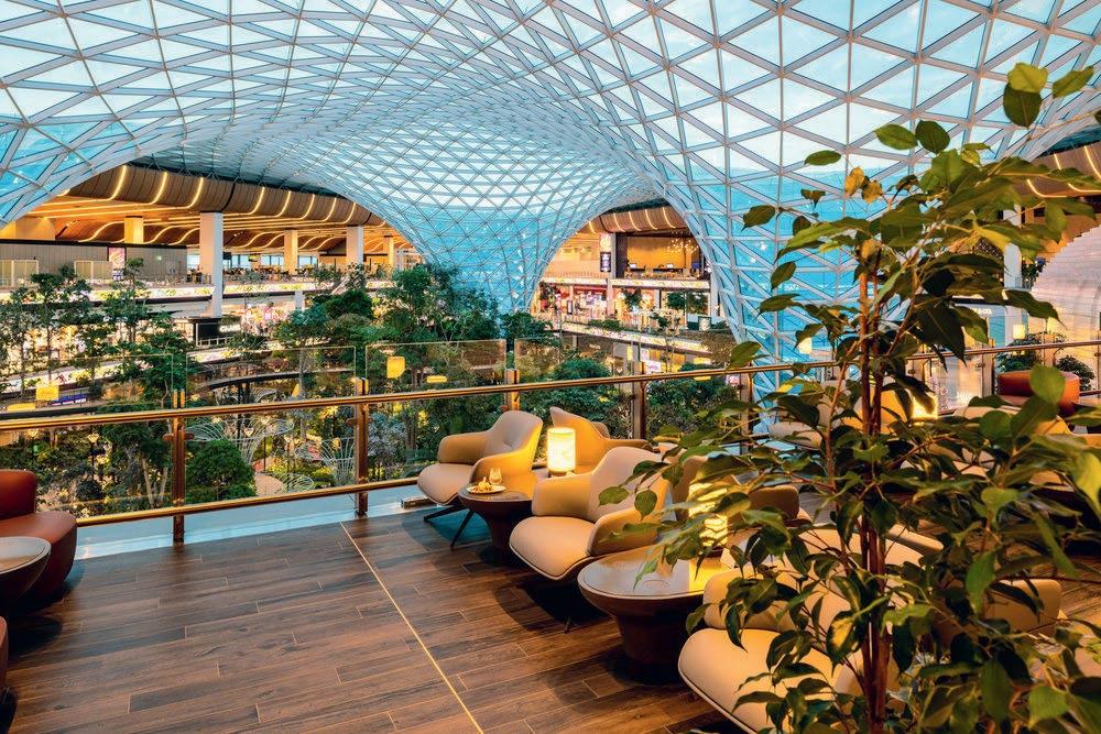 The space offered a noticeably quieter environment than the main terminal and was arranged with a mix of individual armchairs and shared seating, accommodating both work and downtime.