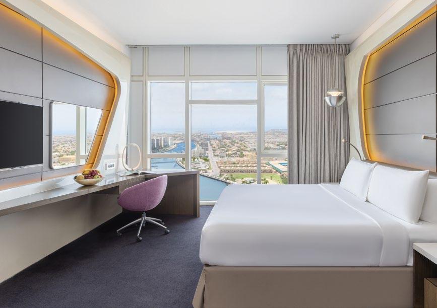 ree magni cent ve-star hotels Habtoor Palace Dubai, Hilton Dubai and V Hotel Dubai are in the heart of one magni cent destination, Al Habtoor City which is located along Sheikh Zayed Road; and transforms luxury hospitality. Collectively the hotels provide about 1,600 elegantly designed rooms and suites, 23 world-class restaurants and lounges, three ballrooms, ve outdoor venues, 37 meeting rooms, over 7,000 sqm of meeting spaces, six pools and two spas. Habtoor Palace Dubai o ers personalised luxury services and royal treatment to all guests. For unforgettable experiences, Hilton Dubai guarantees a lively ambience and for you to create ine aceable memories. At V Hotel Dubai, the home and hub of visionaries is a unique venue which complements work and play, so you can plug in, or socialize and connect. hilton.com