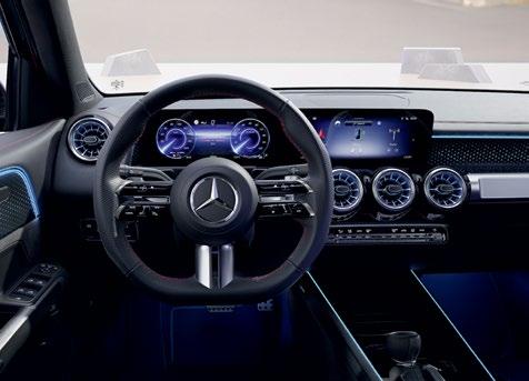 Premium materials such as Vernasca leather and open-pore wood trims envelop passengers in comfort, while ambient lighting and a Harman Kardon surround sound system deliver concert-quality audio.