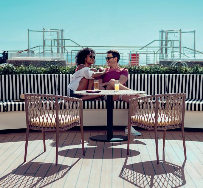 This bar “crowns” the Grand Lobby. It’s a timehonoured favourite, and the ideal place to spend a day at sea. Live music, posh barista coffees and incredible pastries by day, wine, charcuterie boards and more live music by night.