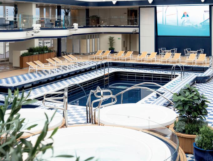 adapted to appeal to them, so round-the-clock dining, showstopping entertainment, and great views don’t cut it any longer. However, a private sanctuary that ups the ante in the luxe factor and purrs opulence, refinement, and privilege certainly does. The notion of a ship-within-a-ship encompassing the services and amenities that are a hallmark of smaller, ultra-luxury ships is a perfect solution for those travellers seeking to embrace the benefits of the prestigious lifestyle within these inner sanctums.