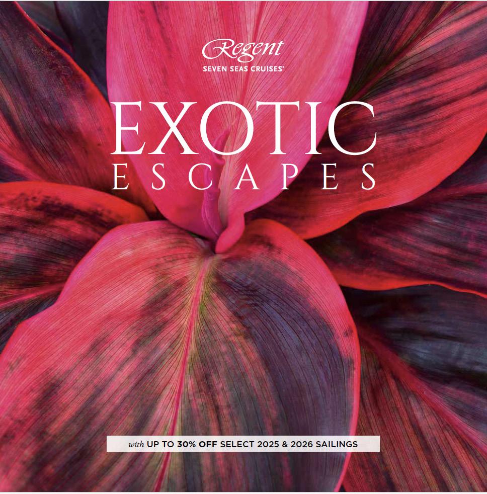 BOOK YOUR 2025 OR 2026 EXOTIC ESCAPE TODAY TO ENJOY UP TO 30% OFF SELECT VOYAGES. FOR MORE INFORMATION CONTACT PANACHECRUISES
