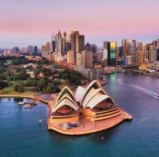 See the sights of Sydney, enjoy a guided tour of the Opera House and watch the surf roll in at world-famous Bondi Beach. Opened by Queen Elizabeth II in October 1973, it remains a lesson in the timelessness of great architecture as well as a defining component of the Sydney skyline. On your guided tour, you’ll gain behindthe-scenes insights into its history, design concept and current role within the city’s cultural life Afterwards, take some free time to stroll this remarkable setting. A visit out to the Gap at Watson’s Bay promises breathtaking views of a different sort, from the cliff you can look out over the Tasman Sea to the north and Watsons Bay and Sydney harbour to the south. Further down the coast you’ll discover Bondi Beach’s half-mile crescent of sand and delightful shoreside eateries.