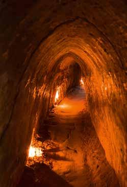 Explore a vast underground network of tunnels that hid and protected thousands of Viet Cong troops during the Vietnam War. The section that you will tour lies beneath the Cu Chi district in the countryside north of Ho Chi Minh City. As you will discover, the tunnels span thousands of miles and once hid an underground city of sorts with living quarters, smokeless kitchens, hospitals and schools. The tunnels were typically 1.5 metres (five feet) high and not even 90cm (three feet wide), with air passages to the surface camouflaged to look like natural holes from tree roots or animals. The tunnels that you will traverse have been expanded somewhat for safety and convenience. Digging the tunnels by hand was an incredibly arduous endeavour. Before abandoning them, the Viet Cong left booby traps for the invading troops.