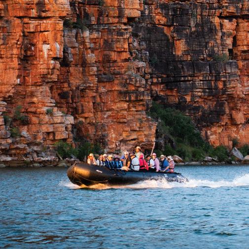 Expect to explore by small boat through winding waterways, hike along rugged trails that reveal hidden rock art and watch the sun set in a way you’ve never seen before. Wildlife reveals itself in brief and enchanting moments - crocodiles gliding silently through the water, eccentric species of birds calling across spectacular cliffs and wallabies pacing in the distant. The Kimberley region awakens the senses at every turn whilst each experience plays a part in a story you’ll carry forever.