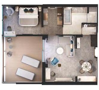 Available as a one-bedroom configuration or as a twobedroom by adjoining with a Premium Veranda Suite